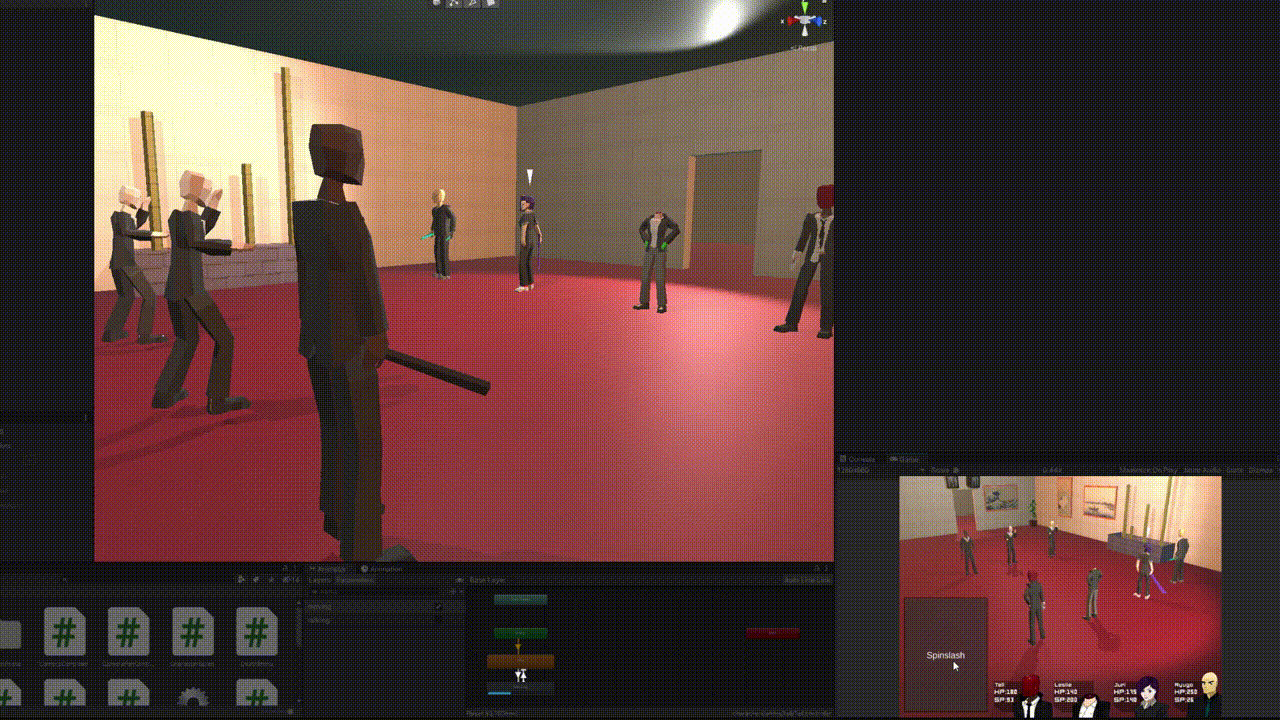 A turn-based RPG with dynamic dialogue and a classic visual style. This was my final year project for college and designed to showcase skills in various areas such as animation, 3D modelling, writing, programming and level design.